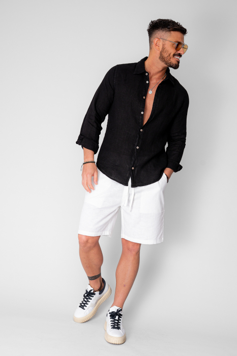 • Camasa din in cu maneca lunga, inchidere cu nasturi
