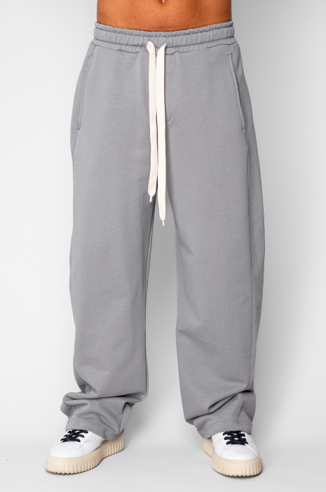 Pantaloni lung drept Oversized din 100% Bumbac Grey