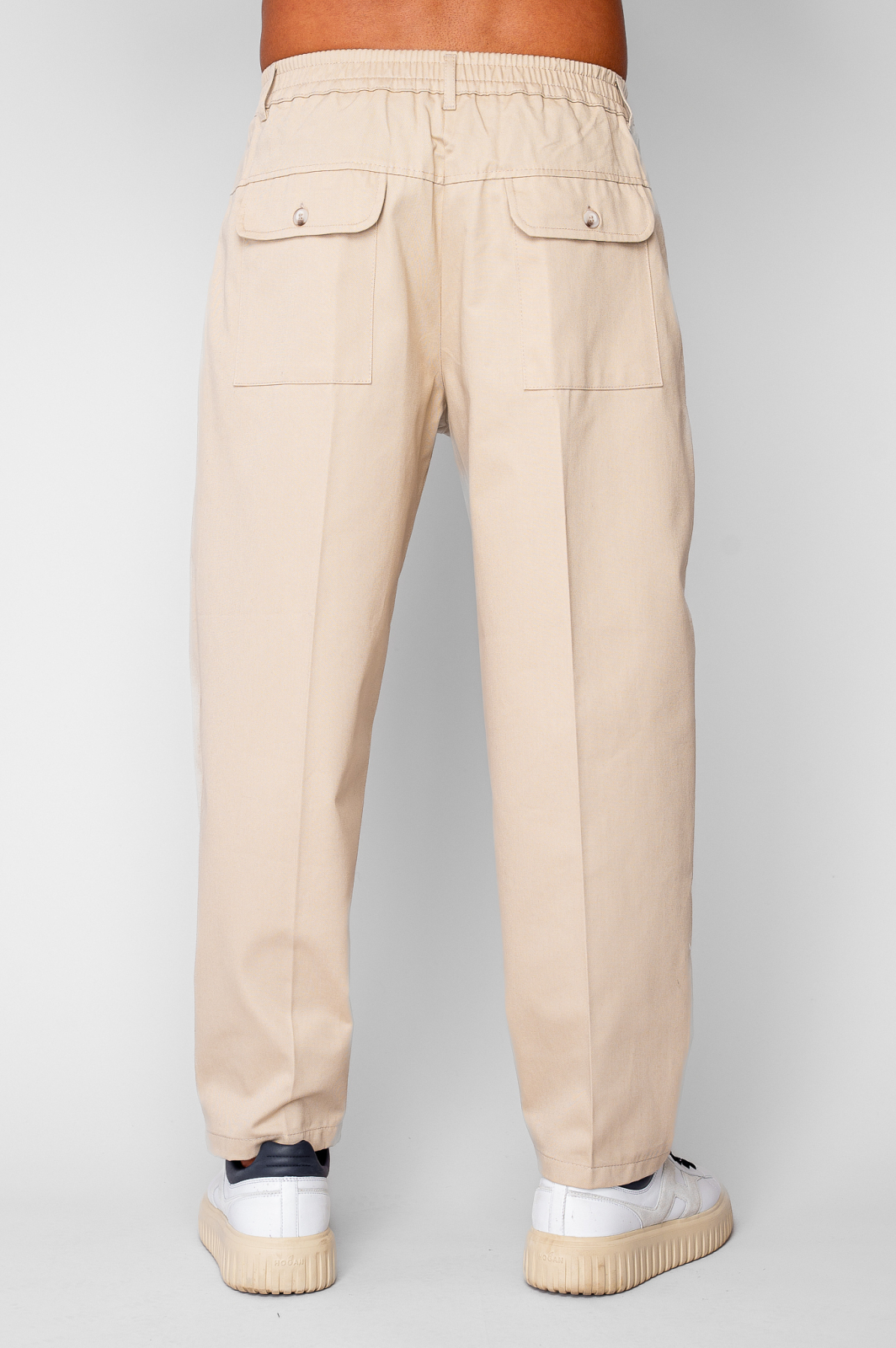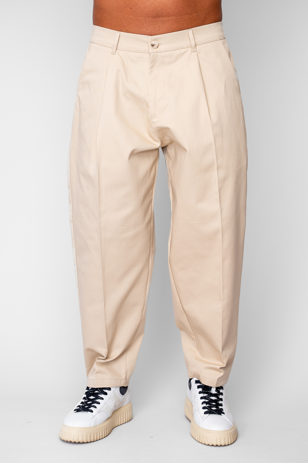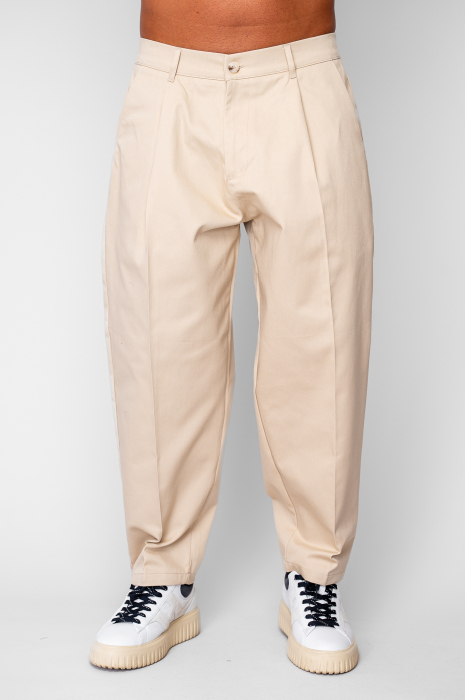 Pantaloni lungi drepti Oversized cu nasture din 100% Bumbac - Premium Edition Beige