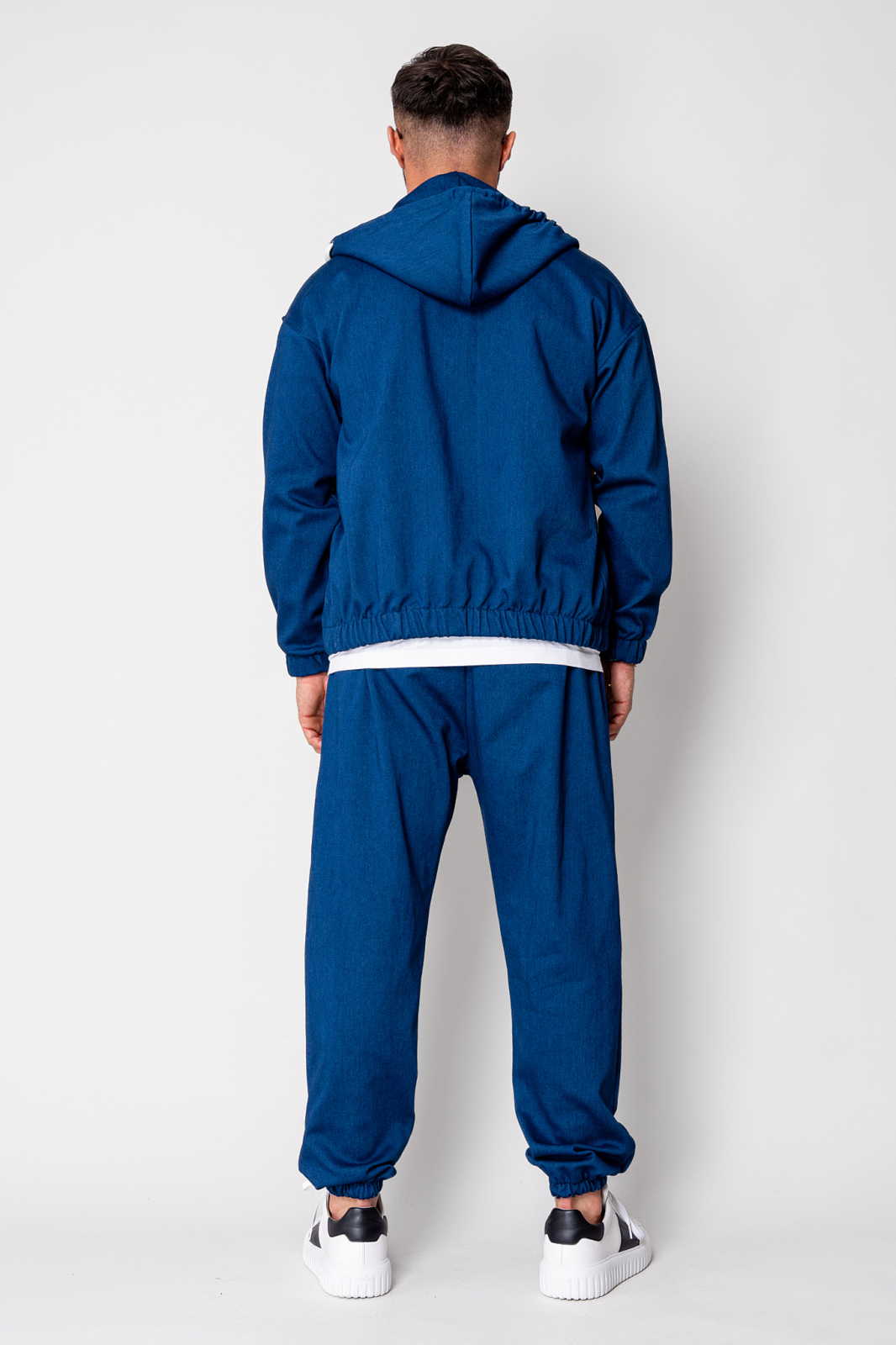 Set premium din denim strech, conceput pentru confort și stil fără efort. Țesătura denim elastică de înaltă calitate, cu compoziţie 71% bumbac, 27% poliester și 2% elastan, oferă durabilitate, flexibilitate și o potrivire plăcută pe corp. Croiala modernă cu hanorac cu fermoar metalic și pantalon lung cu elastic jos still Baggy creează un look urban, rafinat, ideal atât pentru ținute casual de zi cu zi, cât și pentru outfituri smart-relaxate. Denim-ul premium adaugă profunzime cromatică și textură, menținându-și forma și confortul chiar și după purtări repetate. Detaliile minimaliste și culoarea clasică Dark Blue îl fac ușor de asortat cu garderoba existentă.