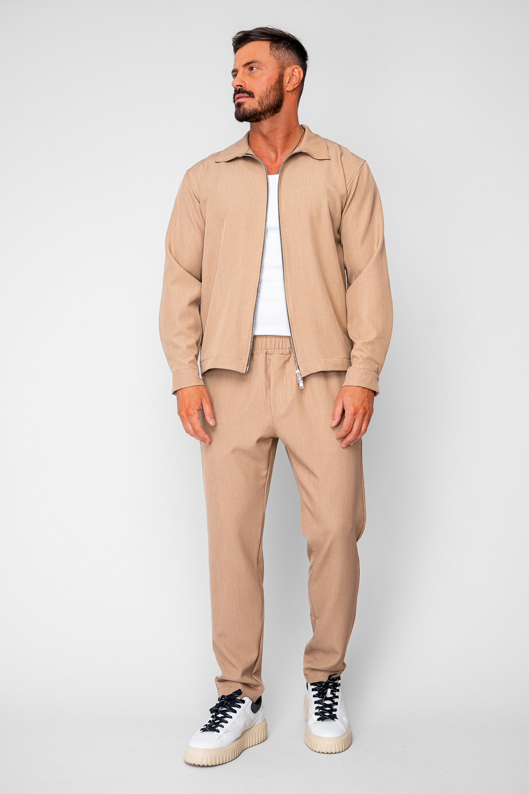 Set Caruso v2 Jacheta cu fermoar si pantalon lung drept Premium Beige