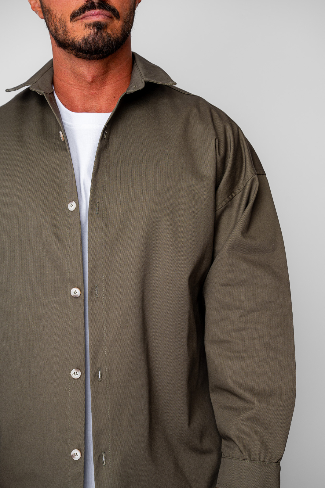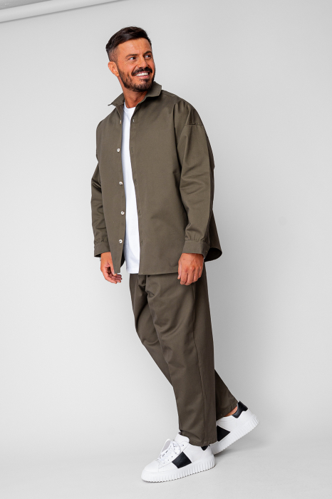 Set Oversized Camasa si pantalon drept din 100% Bumbac - Premium Edition Kaki