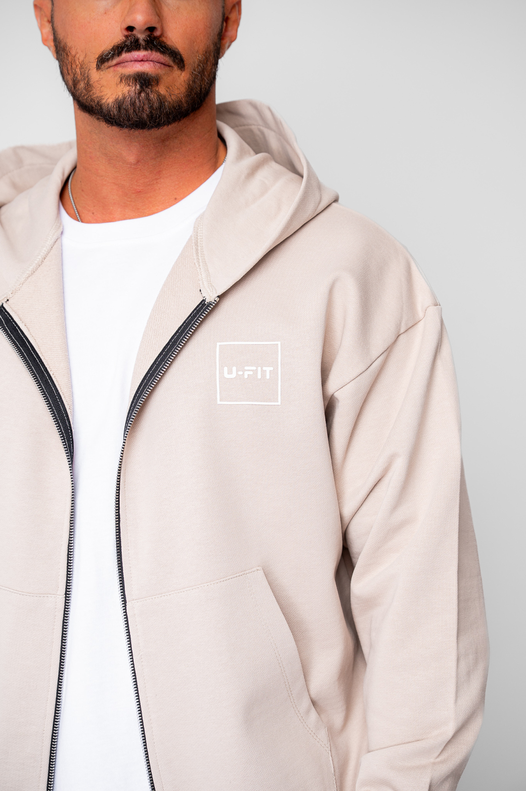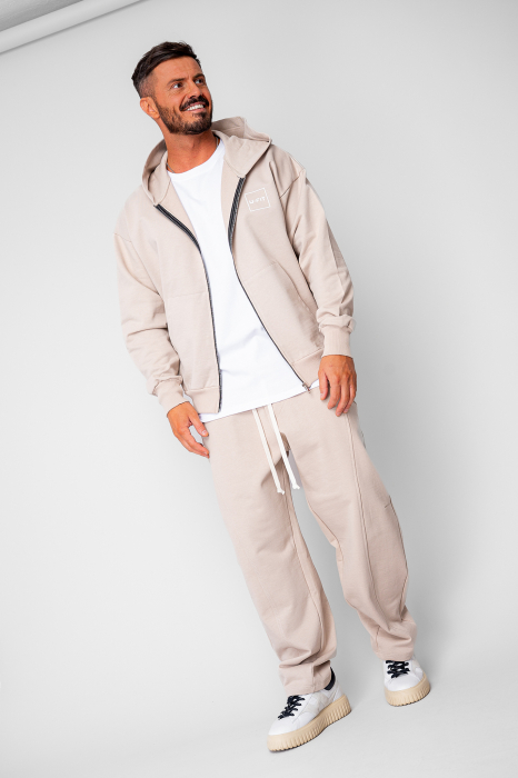 Set Oversized Hanorac cu fermoar si pantalon Baloon fit din 100% Bumbac - 400gr/mp Premium Edition Beige