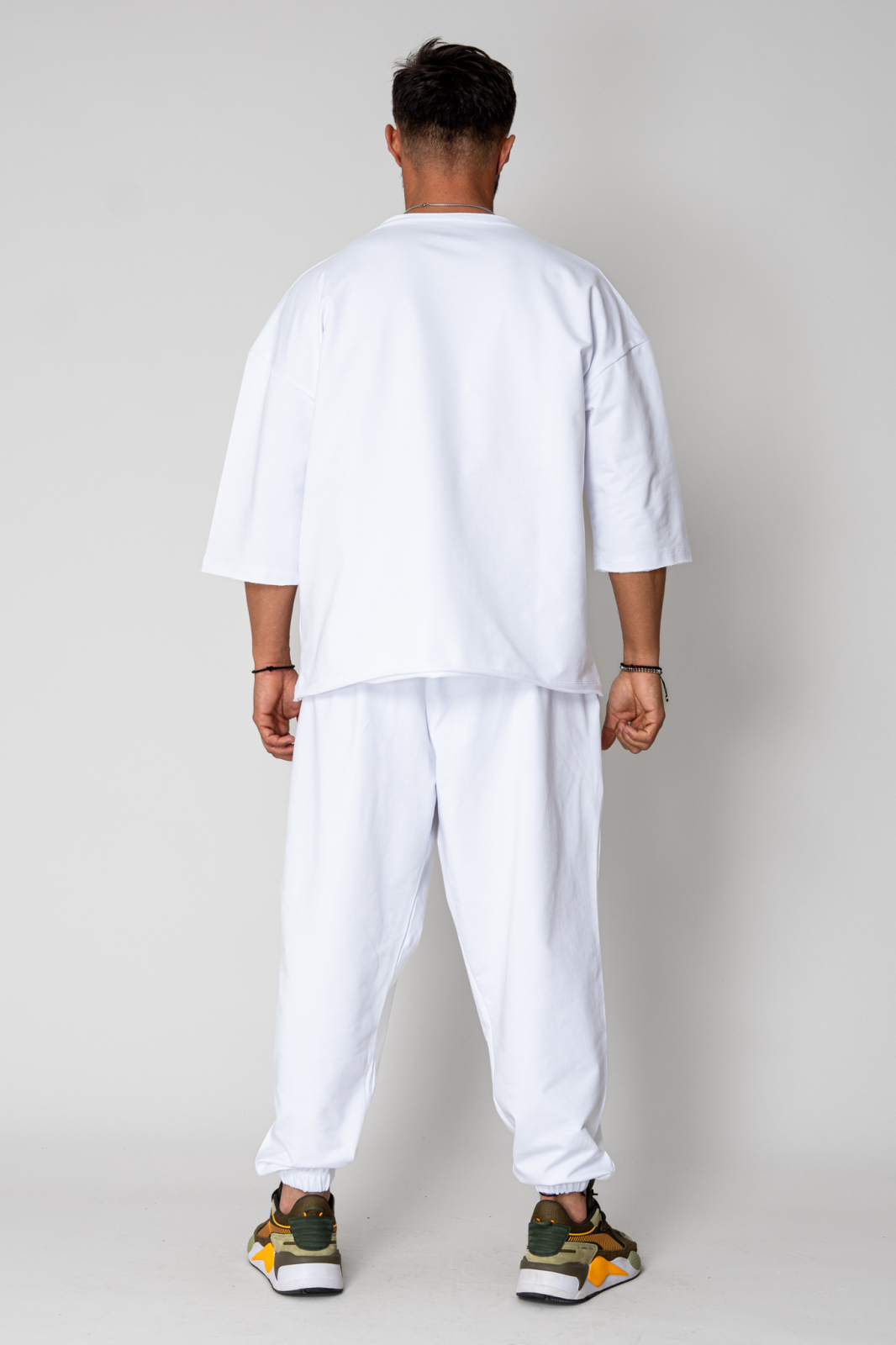 The model is 1.83 cm tall, weighs 80 kg and wears size M