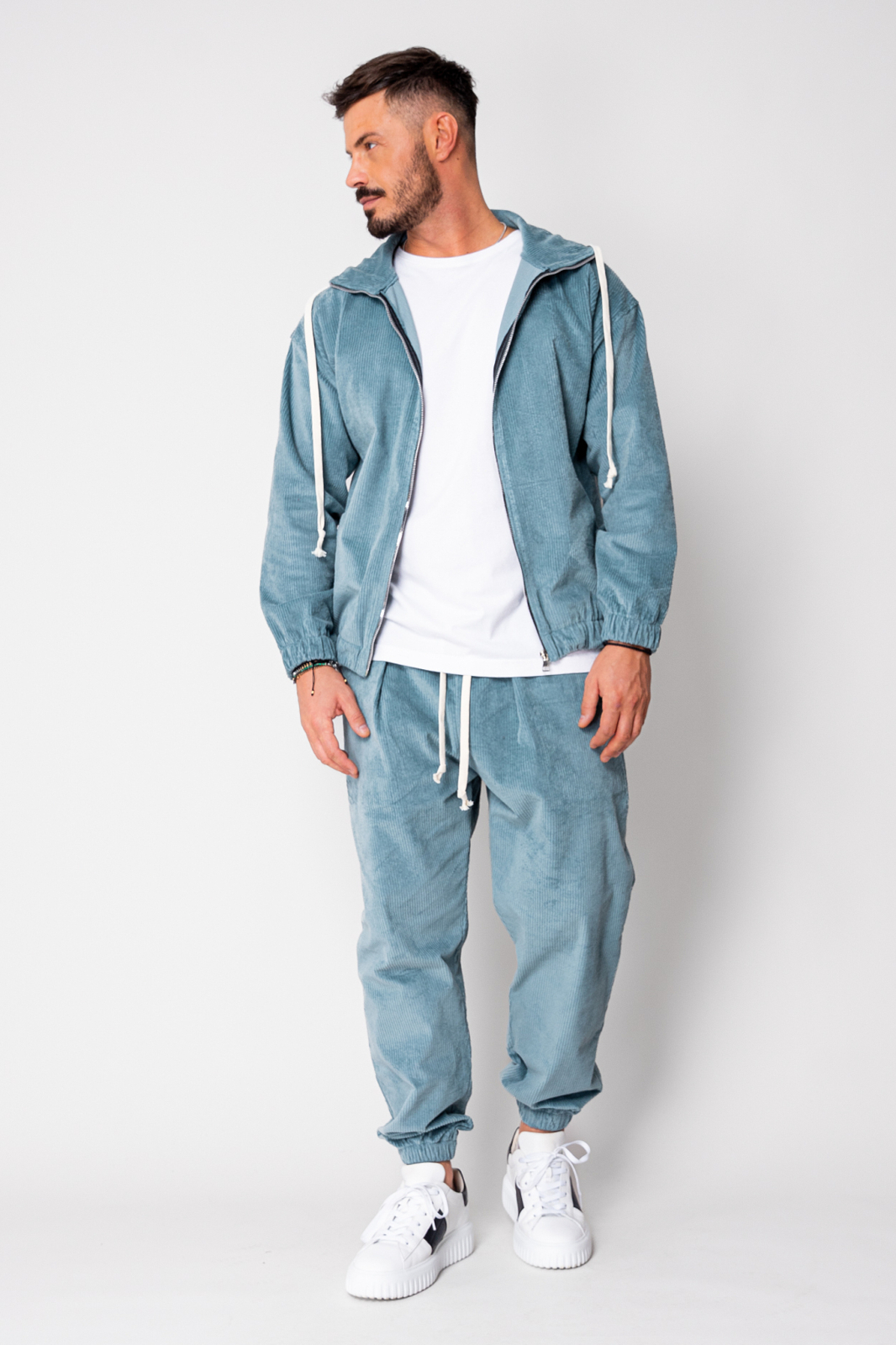 Storm Blue Zippered Jacket and Ribbed Long Pants Set