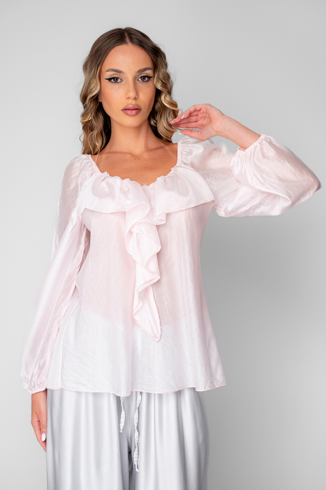 • Bluza lejera, cu maneca lunga si detalii cu volane