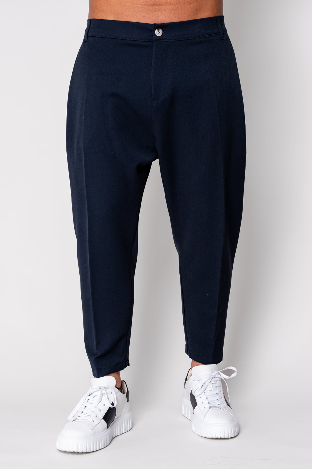 Pantalon lung conic cu tur lasat Navy