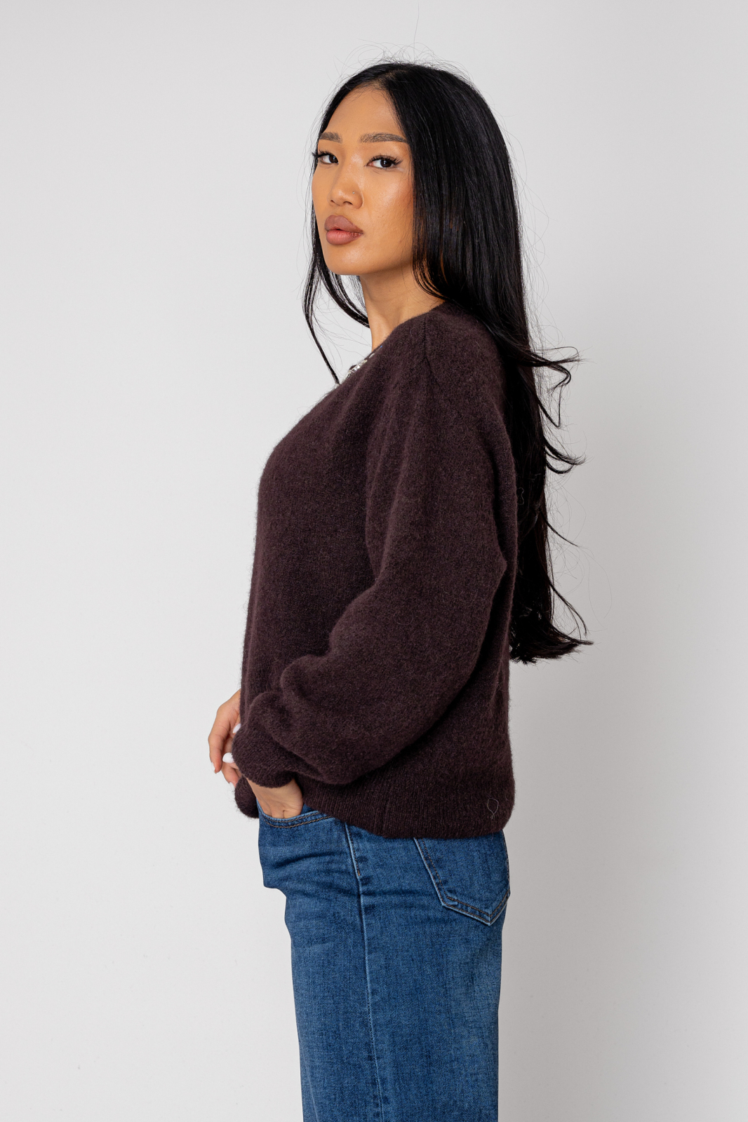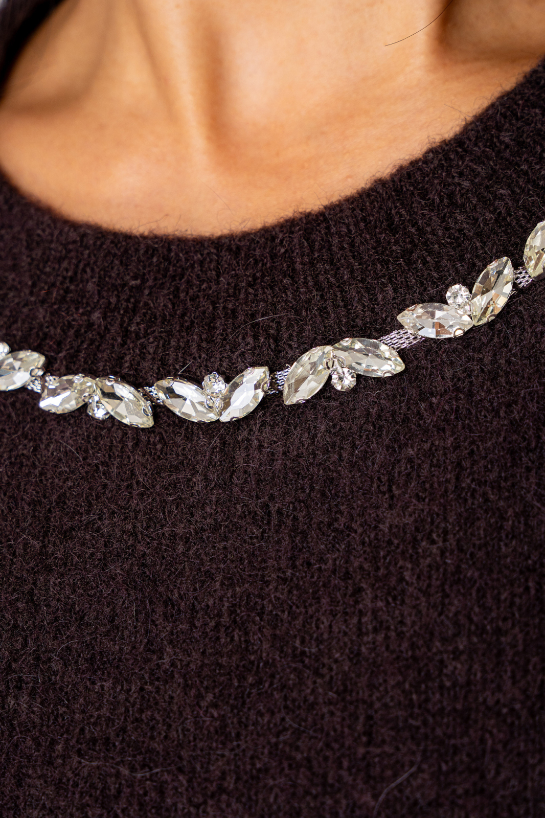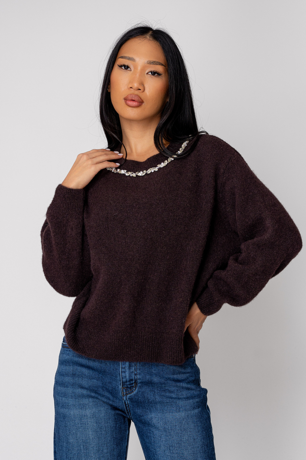 Pulover cu strasuri din mix de lana si alpaca Brown