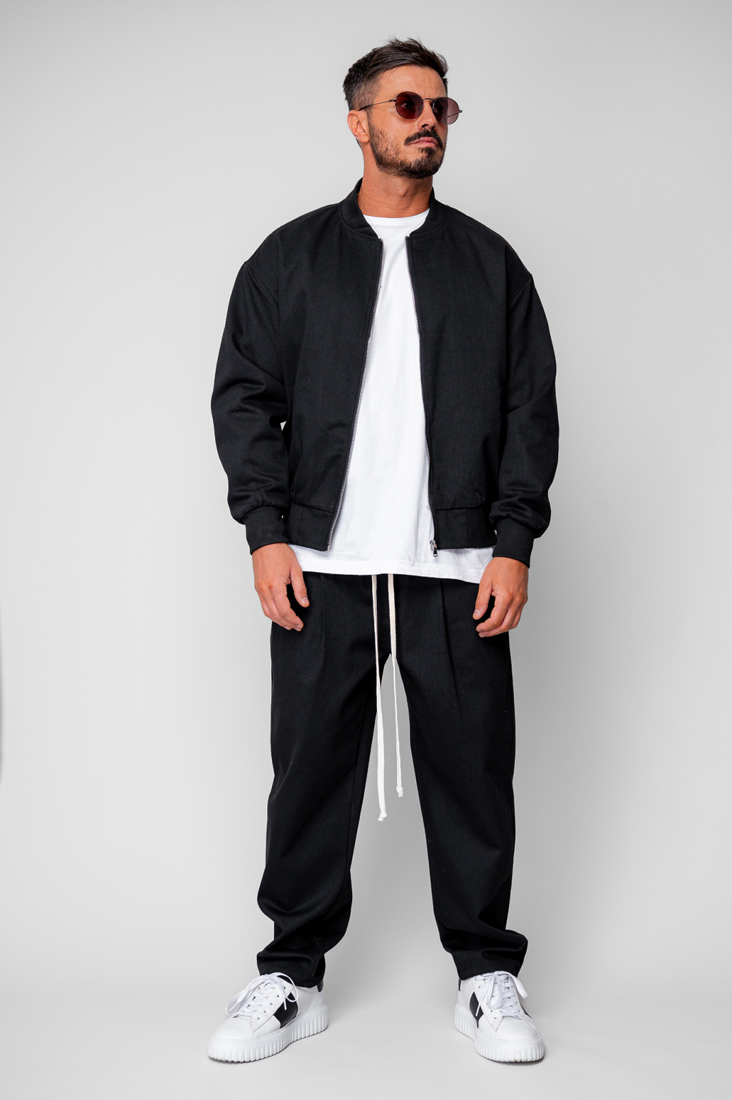 Set Jacheta cu fermoar si pantalon lung drept Black