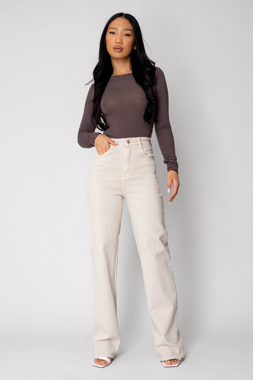 Blugi elastici regular Cream