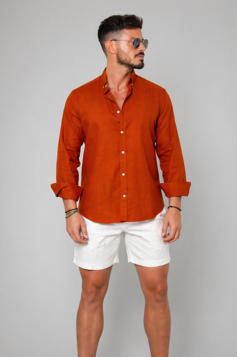 • Camasa din in cu maneca lunga, inchidere cu nasturi