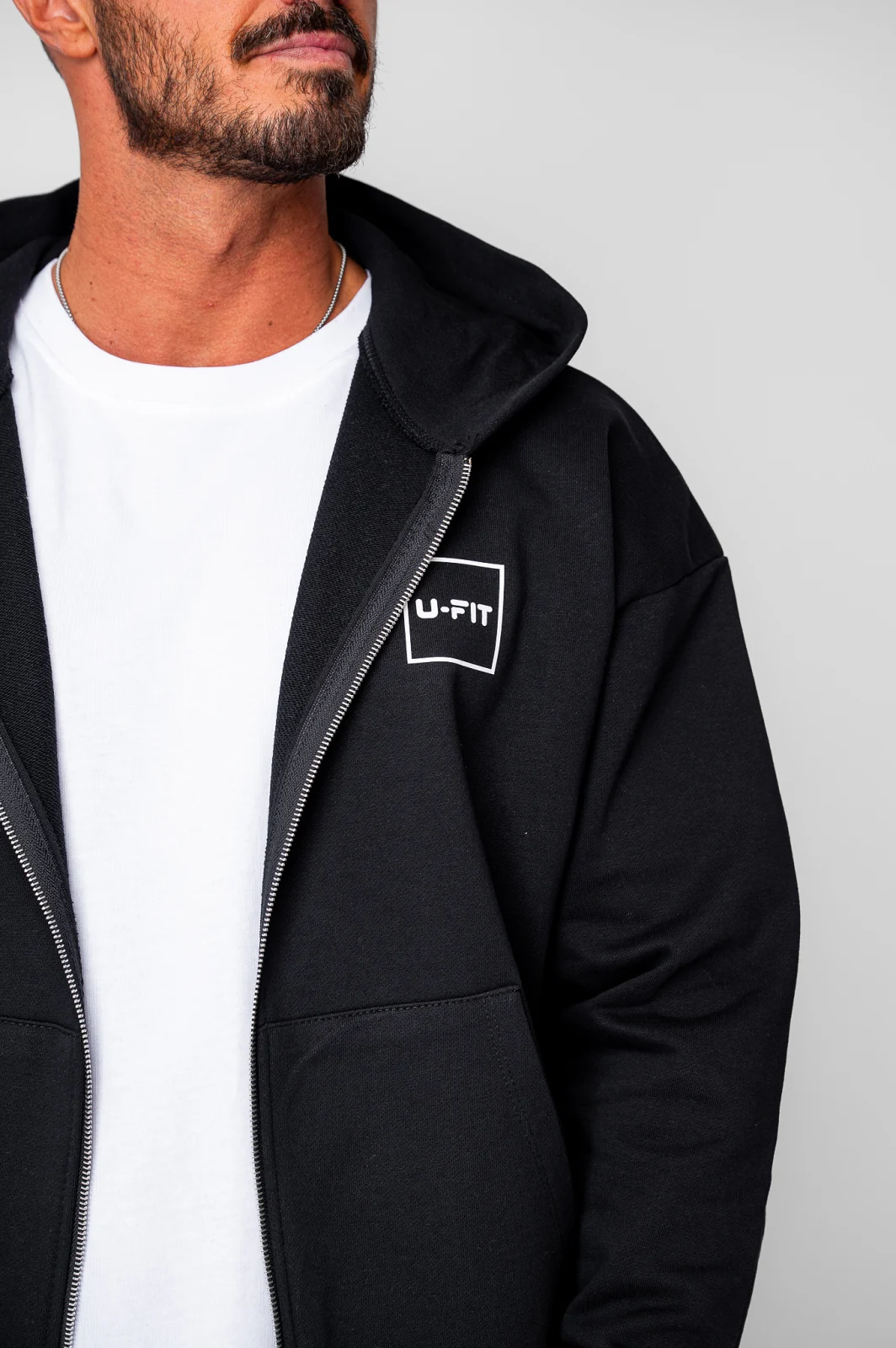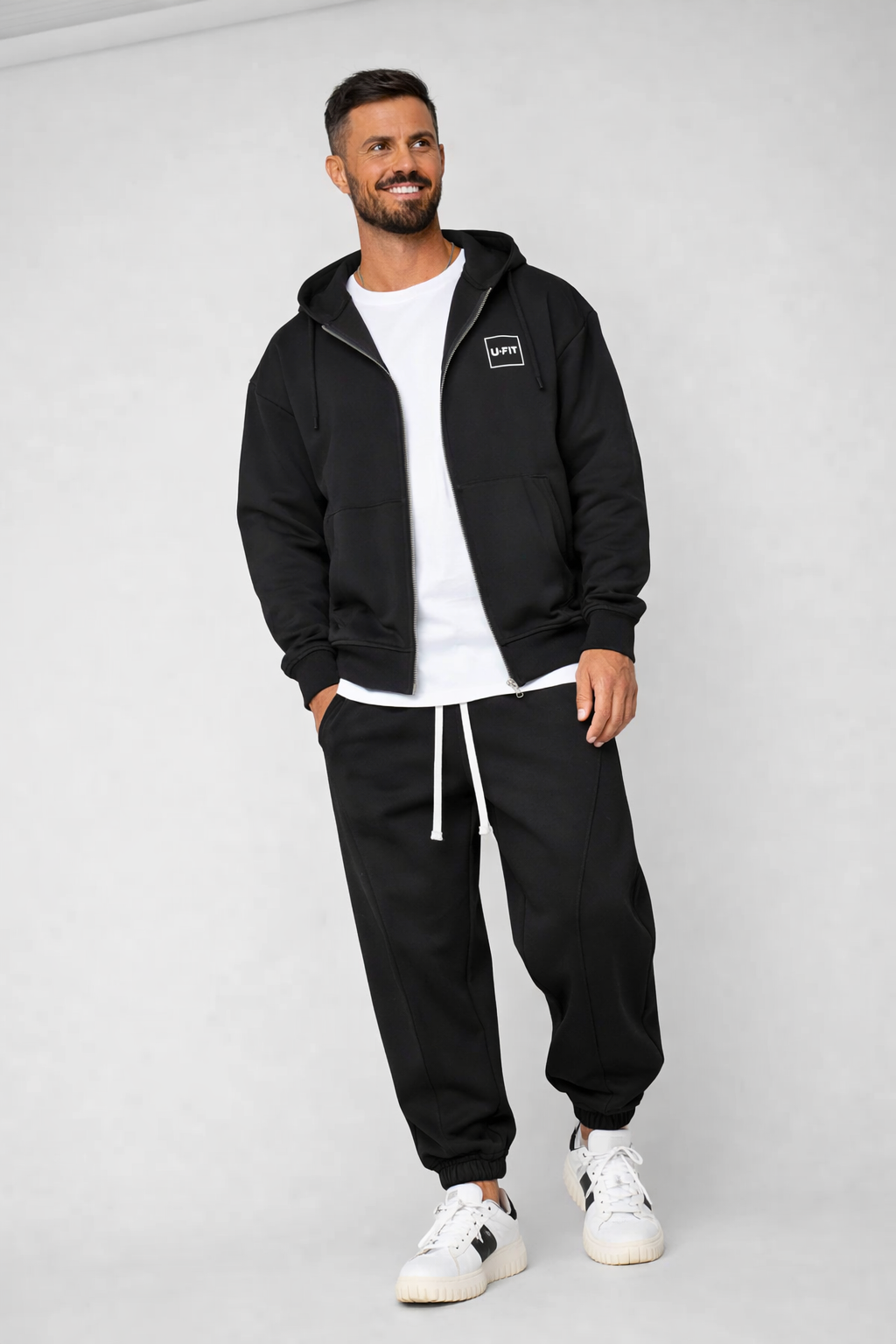 Set Oversized Hanorac cu fermoar si pantalon Baggy din 100% Bumbac - 400gr/mp Premium Edition Black