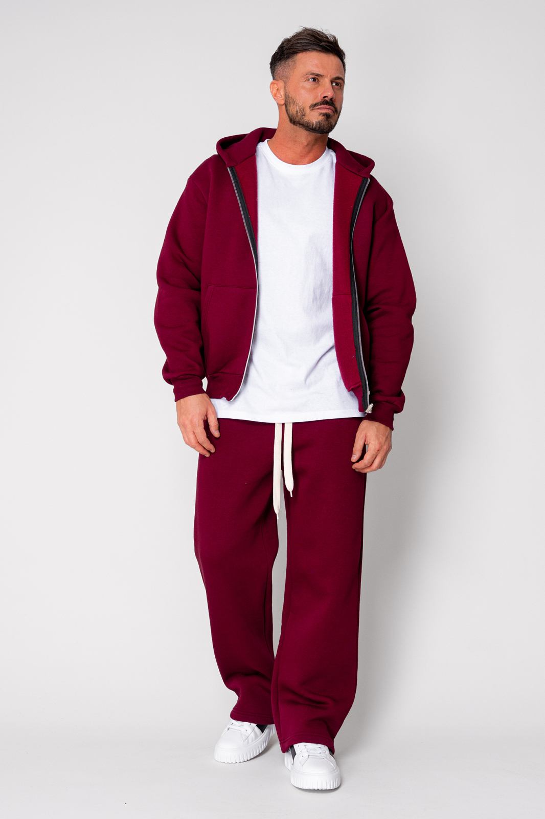 Set Winter hanorac cu fermoar si pantalon drept Burgundy